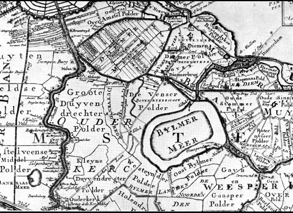 Of course, Amsterdam South East, specifically the Bijlmer, is build on reclaimed land, or, as we say, a polder, and it is surrounded by polders as well. And these polders in turn are surrounded by dikes. The Bijlmer itself is situated where, in the old days, the Bijlmer Lake was located, an area unsuitable for agriculture. The land surrounding the lake has been used for agriculture for centuries, but nowadays much of this land is urbanised. Only few farms remained.